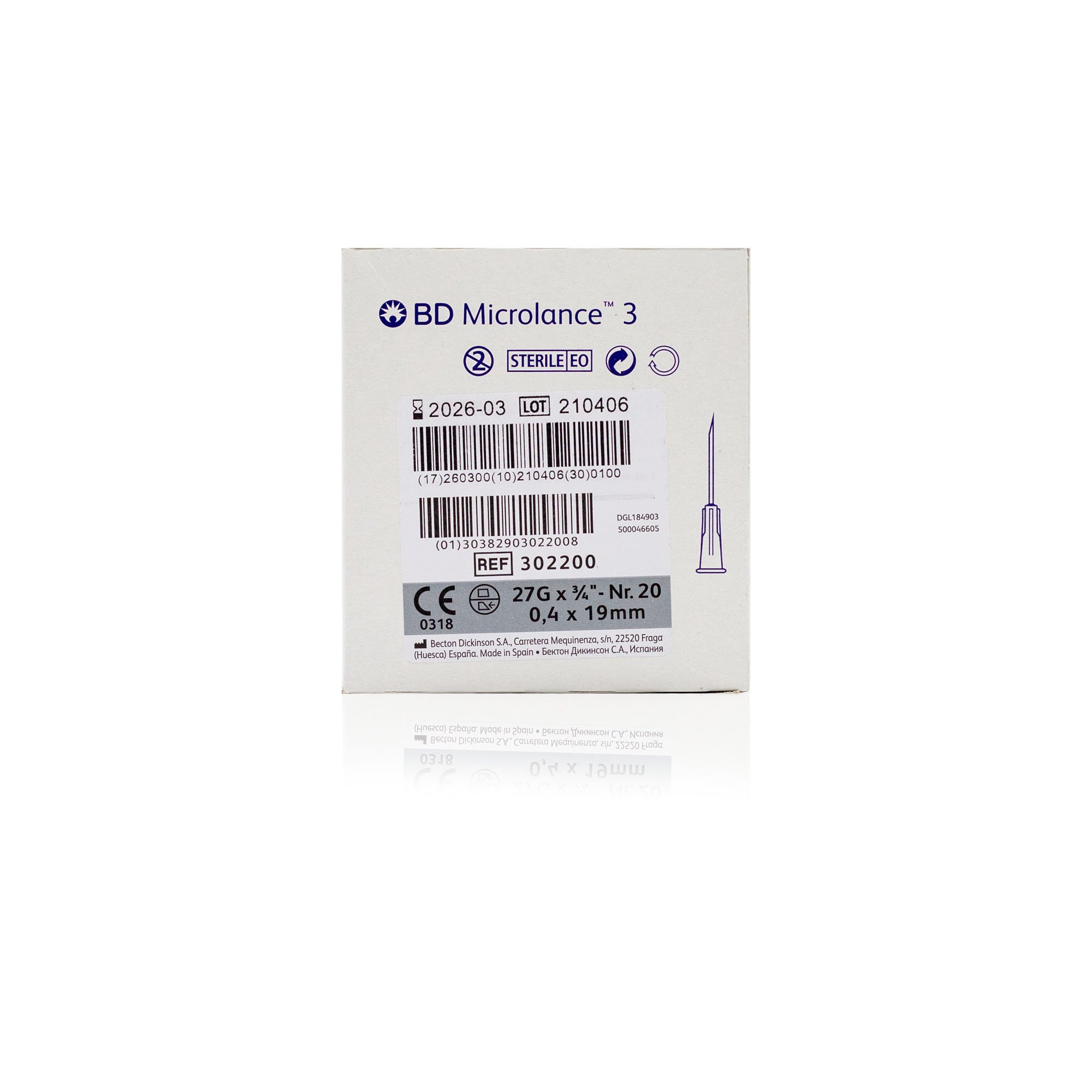 BD Microlance™ Hypodermic Needle, 27 G (grey), 19 mm, ¾”